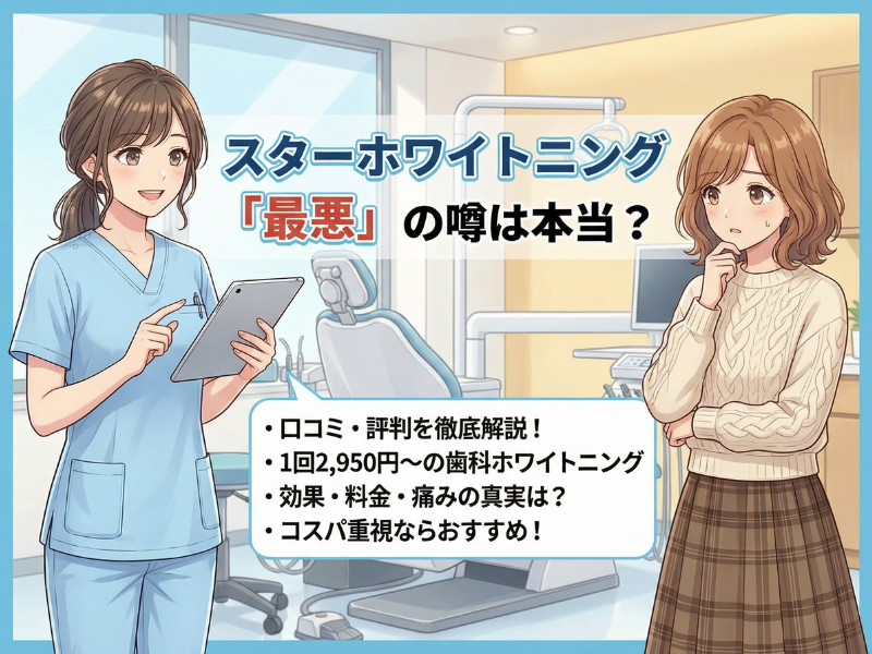 スターホワイトニングは、手頃な価格で始めやすい歯科ホワイトニング専門クリニックとして知られています。一方で、検索すると「スターホワイトニング 最悪」といった不安になるワードが出てくることもあり、「実際どうなの?」と気になる方も多いはずです... -