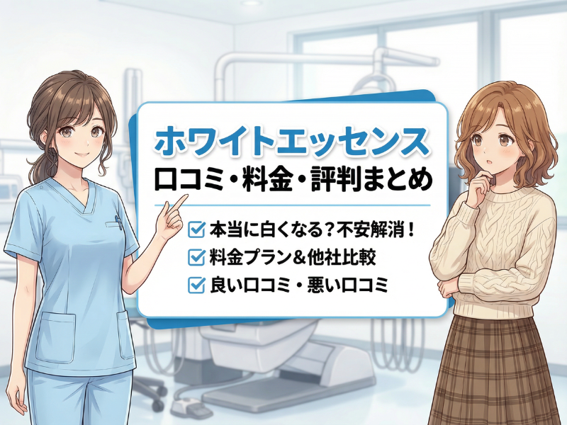 ホワイトニング専門サービスとして注目を集めているのが、ホワイトエッセンスです。全国の歯科医院と提携し、丁寧なカウンセリングと高品質なホワイトニング施術を提供している点が大きな特徴です。本記事では、ホワイトエッセンスのサービス内容や特徴、実際に利用した人の口コミ・評判(良い点・悪い点)、料金プランや他社との違い、利用の流れまで詳しく解説します。「本当に白くなる?」「料金は高い?」といった不安を解消し、安心して検討できるよう客観的な視点でまとめました。
